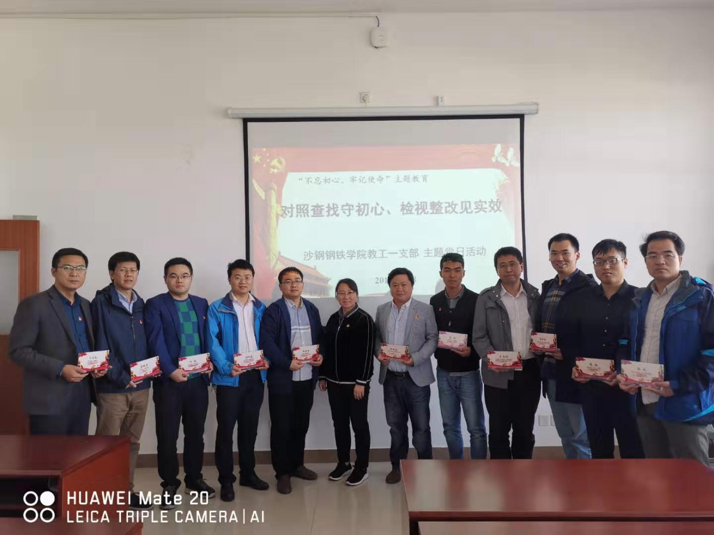按照“不忘初心、牢记使命”主题教育要求,11月8日,欧美激情 教工一支部开展“对照查找守初心 检视整改见实效”主题党日活动,院党委书记宋清华参加指导,教工一支部全体党员参加本次活动,活动由教工一支部书记许继芳主持。
