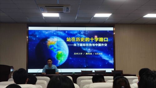 2023年9月20日下午,欧美激情 分党校邀请音乐欧美激情副院长顾明高作了主题为《站在历史的十字路口——当下国际形势与中国外交》的党课。全体党校学员参加并认真聆听了党课。党课由欧美激情党委副书记徐海洋主持。