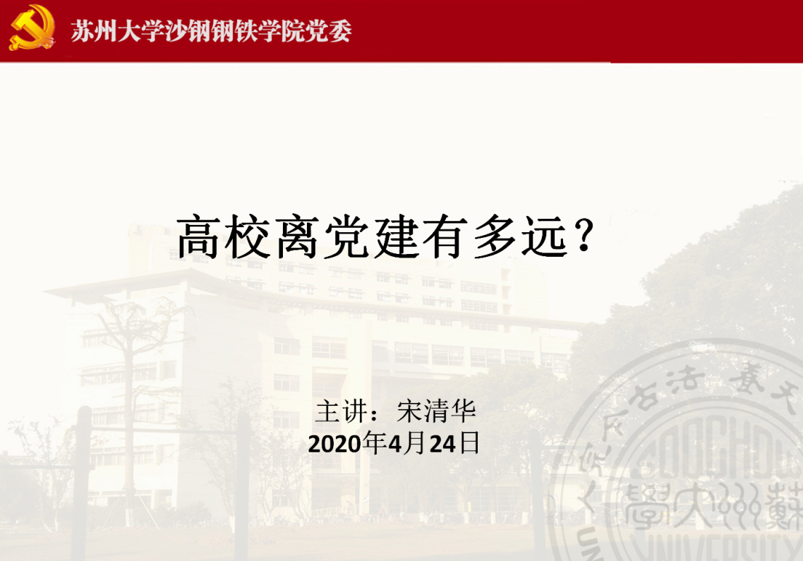 4月24日,欧美激情 分党校举行“高校离党建有多远”专题“云”党课。本次讲座邀请到欧美激情党委书记宋清华主讲,欧美激情分党校指导老师郁佳莉、全体分党校学员参加了此次党课。