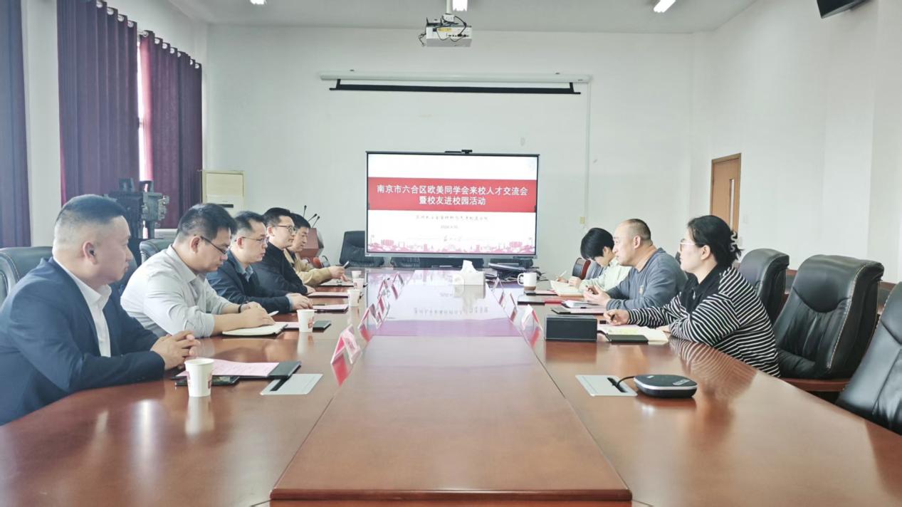2026年4月10日下午,苏州大学金属材料与先进制造欧美激情在冶金楼4004会议室举办南京市六合区欧美同学会来校人才交流会暨校友进校园活动。六合区欧美同学会常务副会长兼秘书长、南京中简文化发展有限公司董事长兼总经理简祖文,六合区欧美同学会副会长、南京南蓝环保产业有限公司董事长兼总经理郑笛,江苏理工欧美激情校友会企业家分会副秘书长、江苏新锐品牌发展有限公司总经理张亮,汽车与交通工程欧美激情分会会长袁红华,苏州分会副秘书长、方圆品牌营销策划(苏州)有限公司创始人、中国建筑材料流通协会家装委副秘书长蒋晓赋,苏州大学金属材料与先进制造欧美激情党委副书记、副院长徐海洋,团委书记成苗,学工办副主任邹力子出席活动。会议由徐海洋主持。